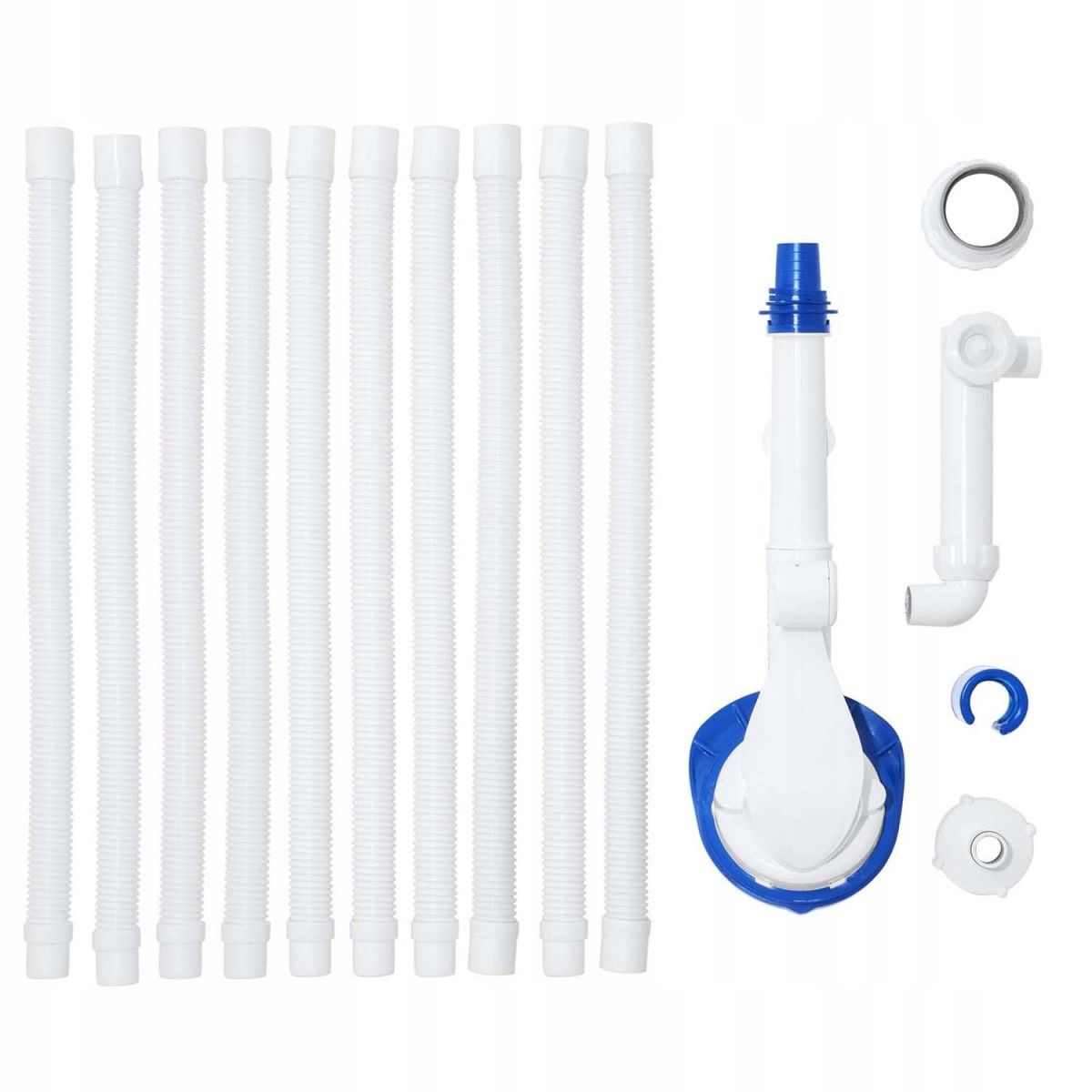 Do prawidłowego działania odkurzacza niezbędna jest pompa filtrująca. W zestawie także dwa różne adaptery do pompy filtrującej.